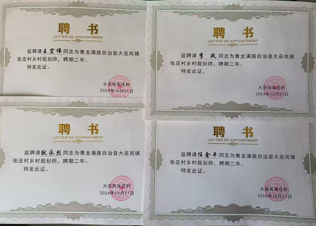 同时,在城建公司前期入村开展乡村规划建设帮扶的基础上,张庄村村委向公司李政经理等4人颁发了乡村规划师的聘书,聘期为二年。城建公司将继续发挥专业优势,积极帮扶张庄村推进产业发展和美丽乡村建设。(编辑:鲁艳丽,审核:刘志飞)