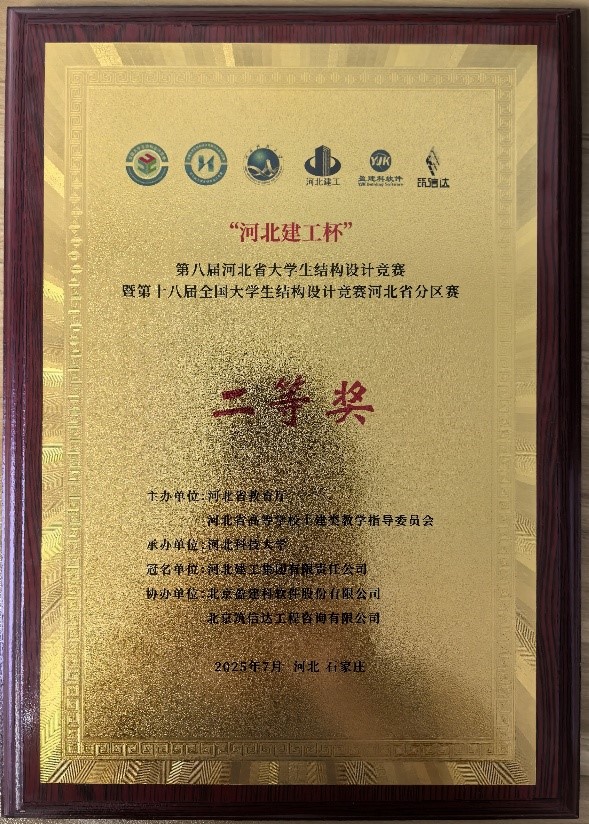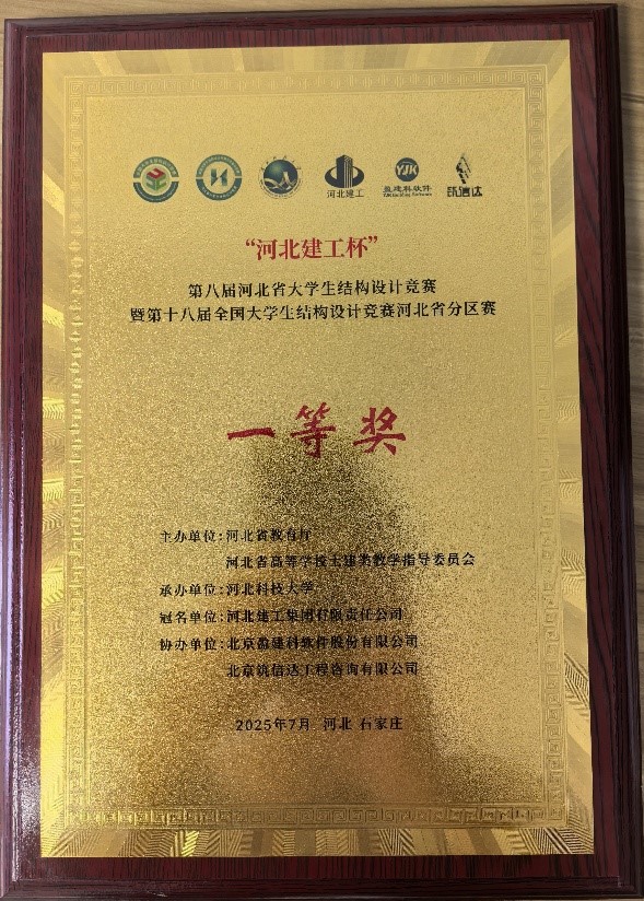 2025年7月12日至14日,由河北省教育厅、河北省高等公司土建类教学指导委员会主办,河北科技大学承办的第八届河北省老员工结构设计竞赛暨第十八届全国老员工结构设计竞赛河北省分区赛成功举行。公司2支代表队与全省25所高校54支队伍同台竞技,最终凭借扎实的专业功底和出色发挥,分别荣获省赛一等奖和二等奖。