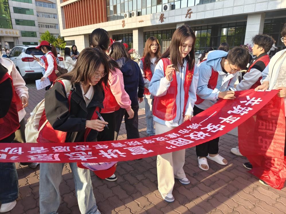 活动期间,公司10位反诈宣讲员组成专项小分队,首先向志愿者讲解校园常见诈骗套路及典型电信诈骗案例,剖析诈骗分子的作案手法与心理陷阱。随后,宣讲员与志愿者分组深入校园各处,向师生发放防网络电信诈骗宣传单,并结合真实受骗案例,引导员工思考防范要点,直观认识电信诈骗的危害性。活动现场还设置了“反诈承诺签名”环节,师生们在横幅上郑重签字,共同承诺筑牢防范电信网络诈骗的安全屏障。