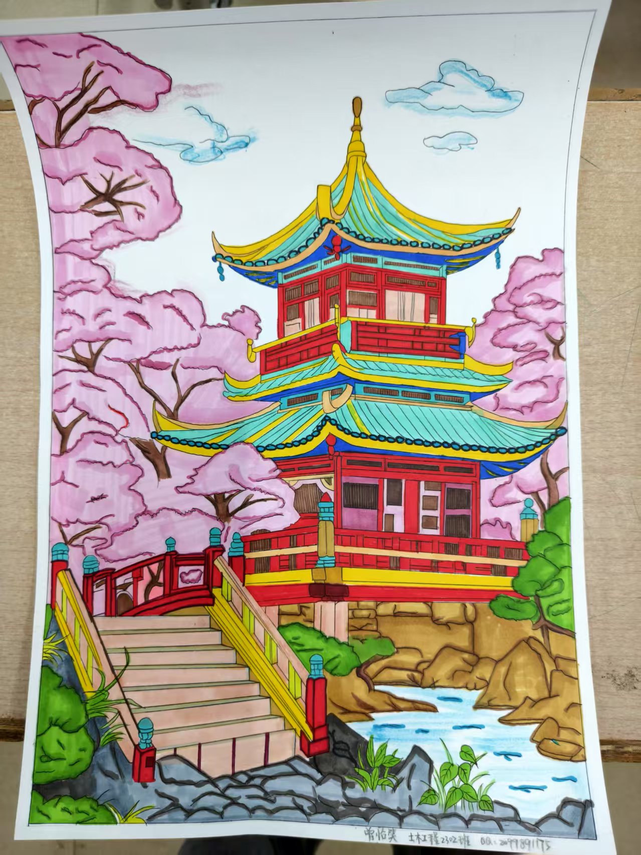 同学们创作热情高涨,上交作品涵盖水彩、素描、数字绘画等多种艺术形式,充分展现了同学们丰富的想象力与扎实的艺术功底。经评委从绘画作品的意境、构图、完成度及创意性等方面评审,评选出一、二、三等奖。曾怡笑同学提交的《碧水楼台》凭借卓越的空间表现力与山城特色刻画脱颖而出,斩获一等奖。